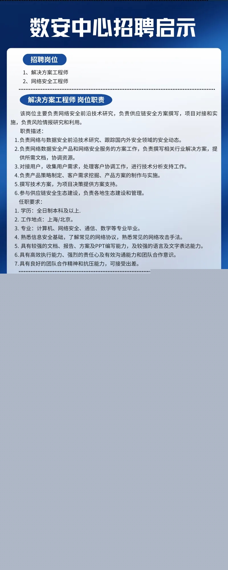 数安中心招聘启示